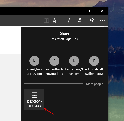 Basically, the Near Share feature is part of the Share family. If you see a Share icon in any of your favorite apps, you can use Near Share feature to share file or URLs to nearby Windows devices that have Near Share feature enabled. For example, you can share photos in Photos app, an URL in Microsoft Edge, or right-click a file in File Explorer and choose Share from the context menu.
